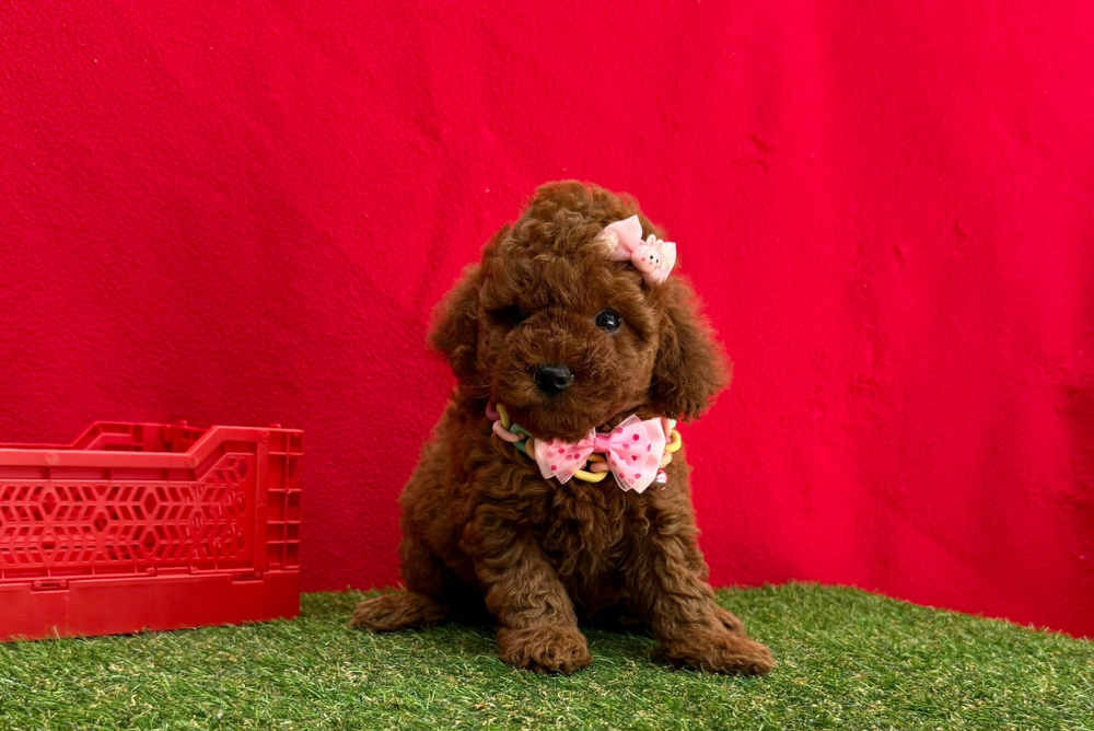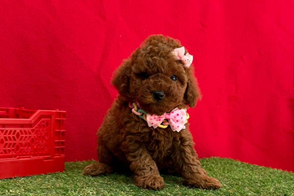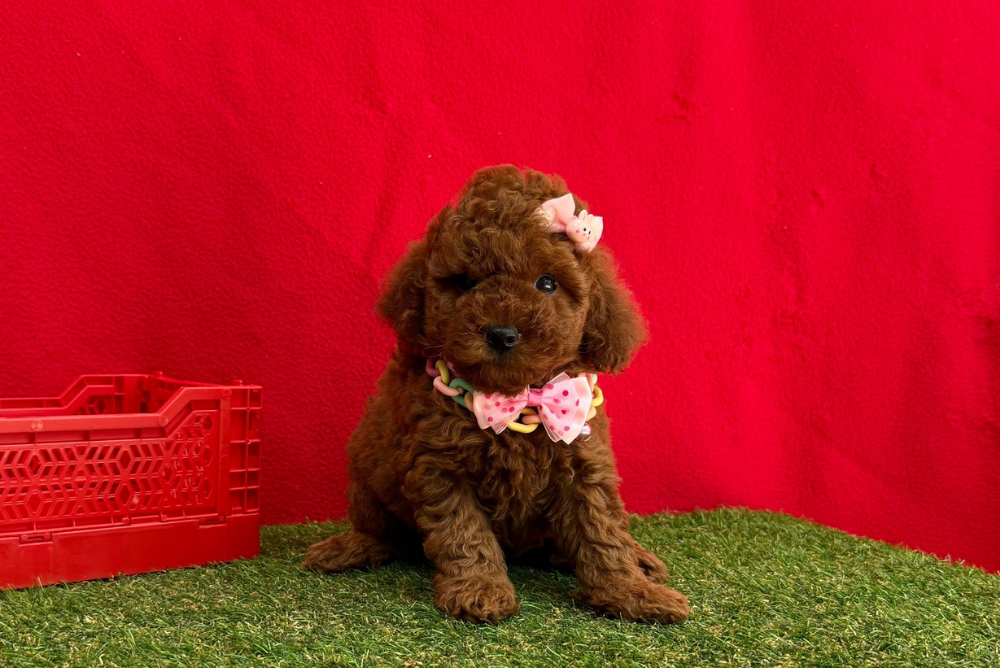 Hera, named after an ancient goddess, is a female Poodle who stands out with her noble and majestic demeanor. With her shiny, curly coat and confident gaze, she is a true princess.